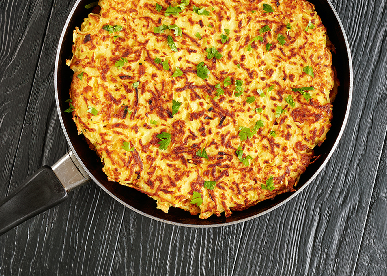 swiss rosti or potato pancake, flat lay