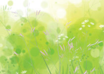 Vector spring, nature background with chamomiles and dandelions.